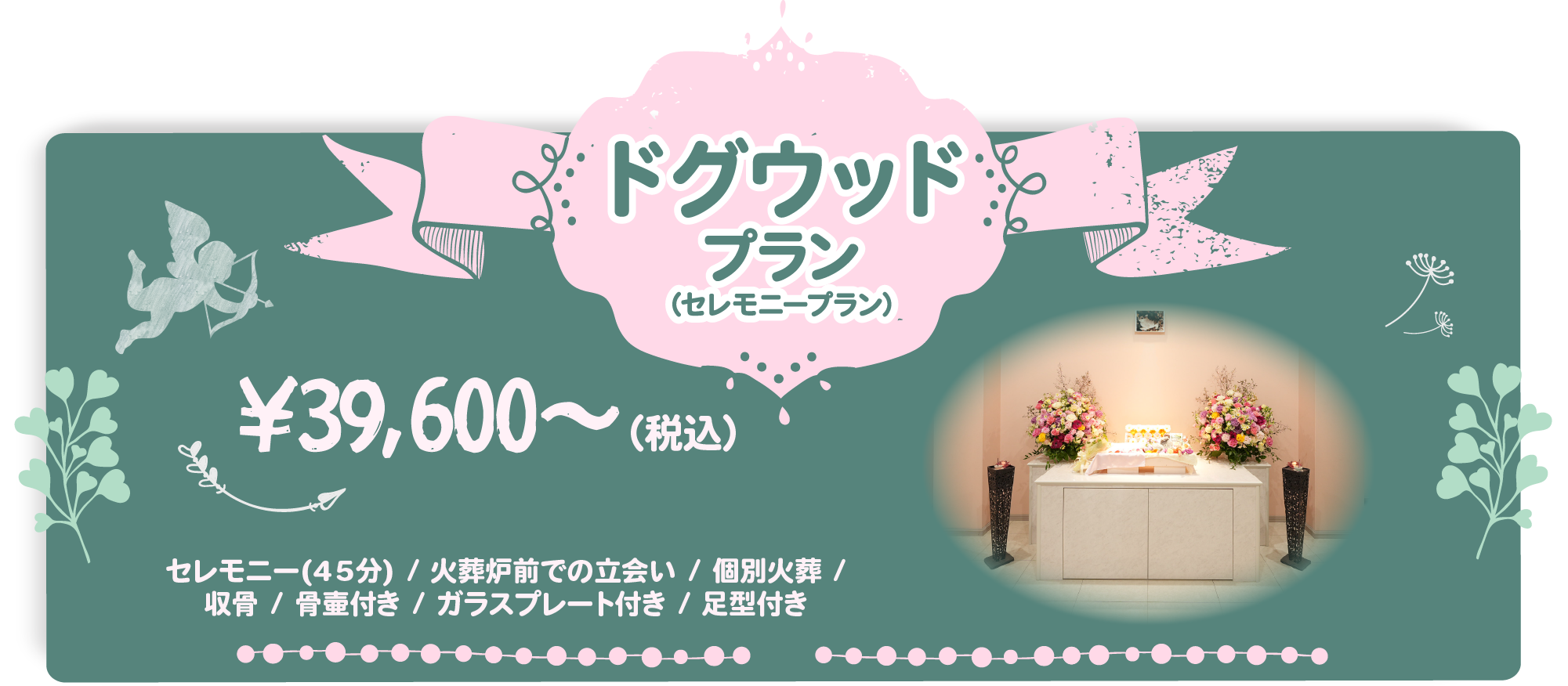 『家族同様にいつくしんできた、小さな生命とのお別れにあたり、納得のできる方法を選択したい』ドグウッドクラブは、そうお考えになる「あなたのお気持ち」を大切にさせていただきます。心地よい音楽、アロマの香りと花いっぱいの空間で、楽しかった「あの時、この時・・・」たくさん思い出してみましょう。送る人の気持ちを受け止め、心のこもった応対を専門とするスタッフが担当させていただきます。きっとご満足いただけるものが、ここにはあります。