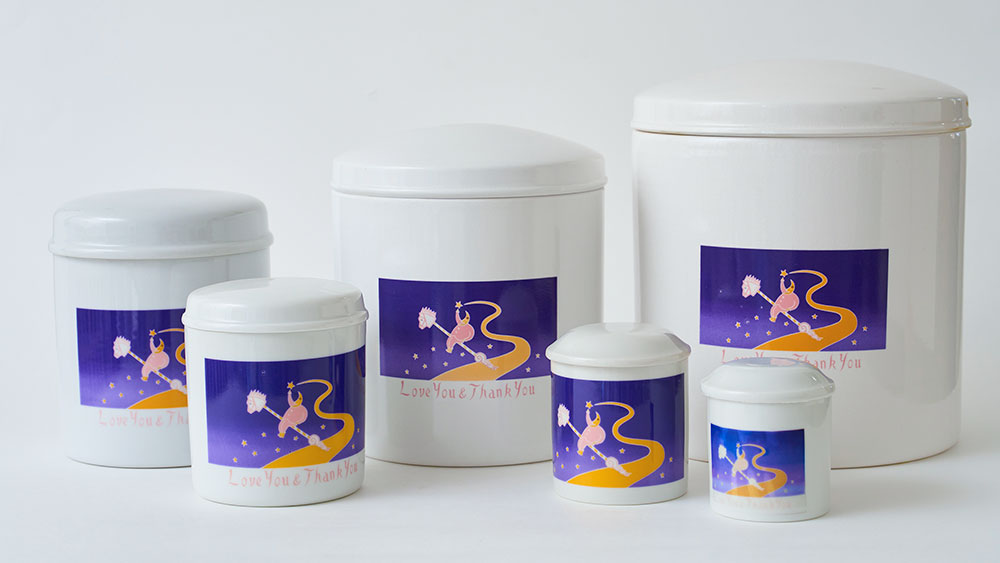 当クラブオリジナルデザインの骨壷です。セレモニープラン、個別火葬プランにお申し込みの方にお付け致しております。骨壷カバーもご用意しております(有料)。